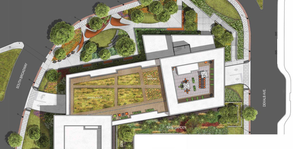 Site clearing and existing building demolition has commenced at One DeKalb Avenue in White Plains; the new six-story, 77-unit apartment building features a multi-toned terra-cotta rain-screen panel system on the exterior and a new public park along Maple Avenue.